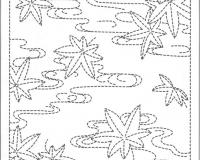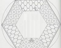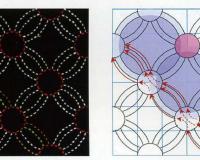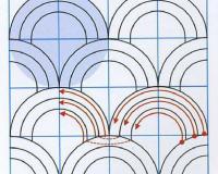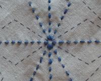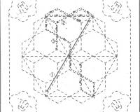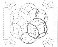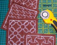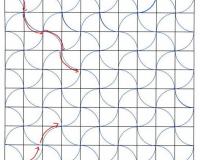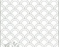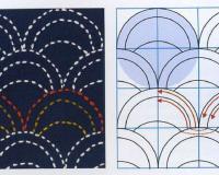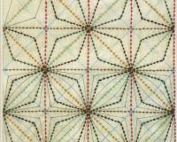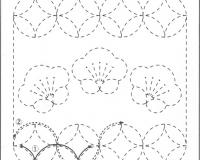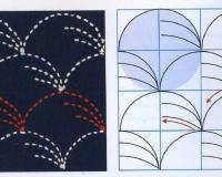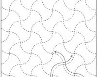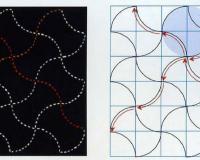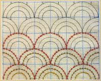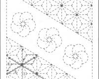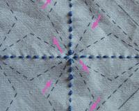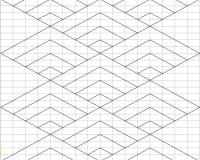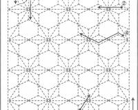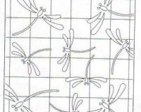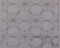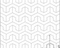 Nusibraižę brėžinį nukopijuojame ant audinio. Pirmiausia dygsniuojame horizontalias ir vertikalias linijas, išskyrus išorines, po to skersas linijas.